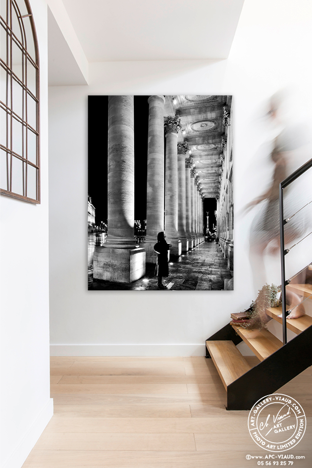 De nombreux passants sont en admiration devant ce magnifique monument comme cette femme qui s’est arrêtée devant les 12 colonnes de l’Opéra prolongées avec la Colonne des Girondins.