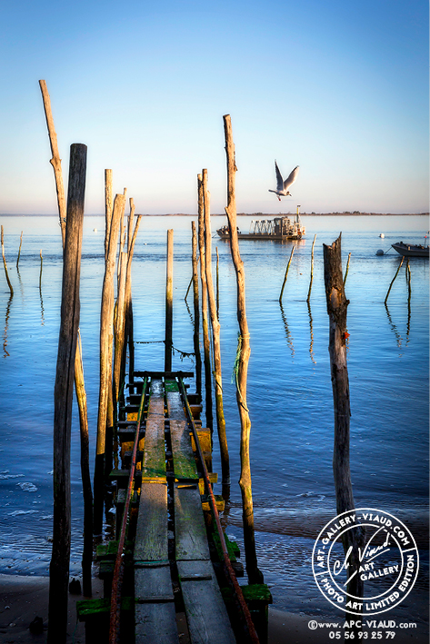 Lors d'une promenade sur le Bassin d'Arcachon au soleil couchant, nous nous laissons guider par la lumière et le calme ambiant. A cet instant nous dérangeons le repos de cette mouette qui s'envole au large ...