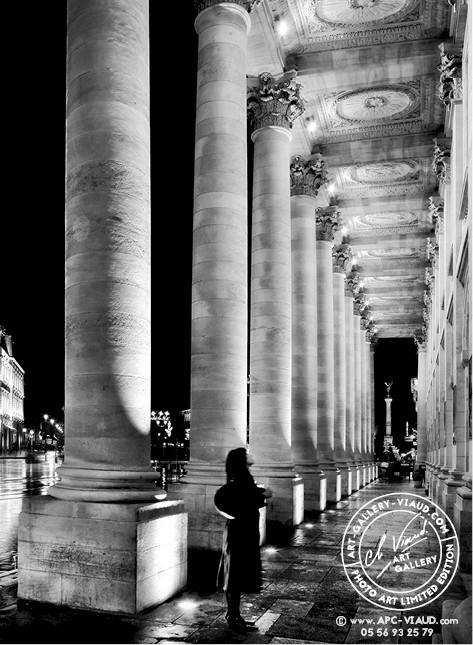 De nombreux passants sont en admiration devant ce magnifique monument comme cette femme qui s’est arrêtée devant les 12 colonnes de l’Opéra prolongées avec la Colonne des Girondins.