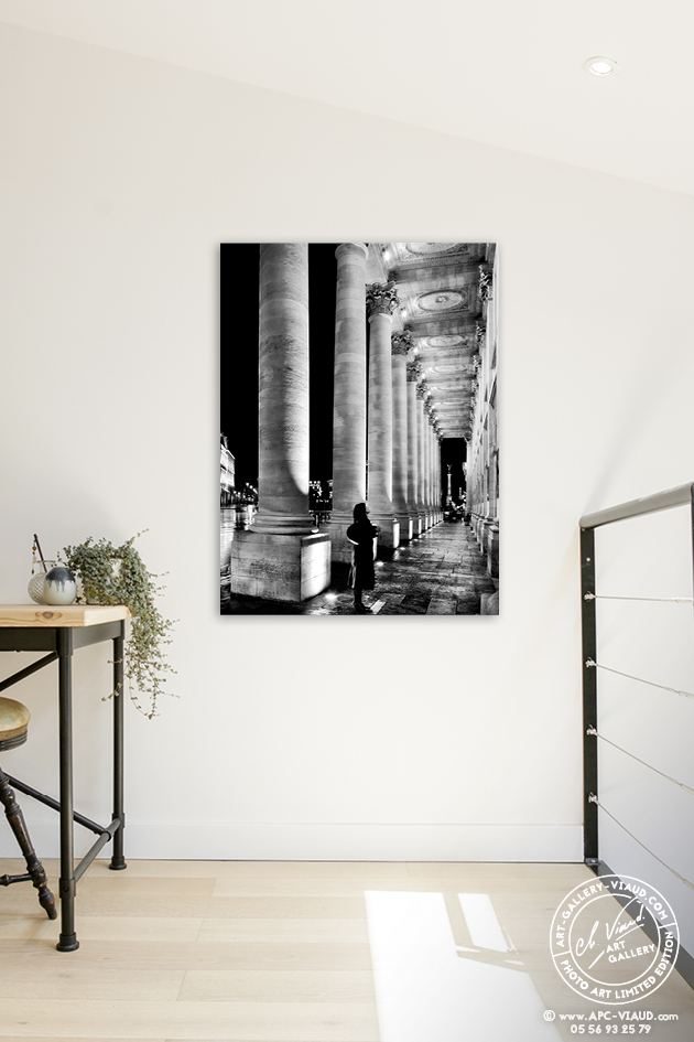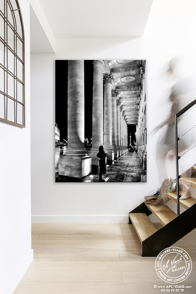 De nombreux passants sont en admiration devant ce magnifique monument comme cette femme qui s’est arrêtée devant les 12 colonnes de l’Opéra prolongées avec la Colonne des Girondins.