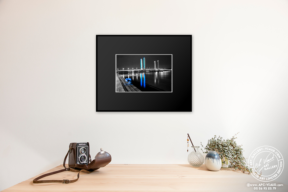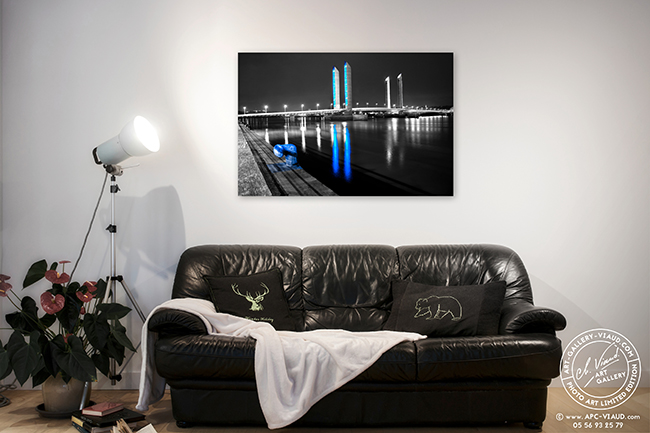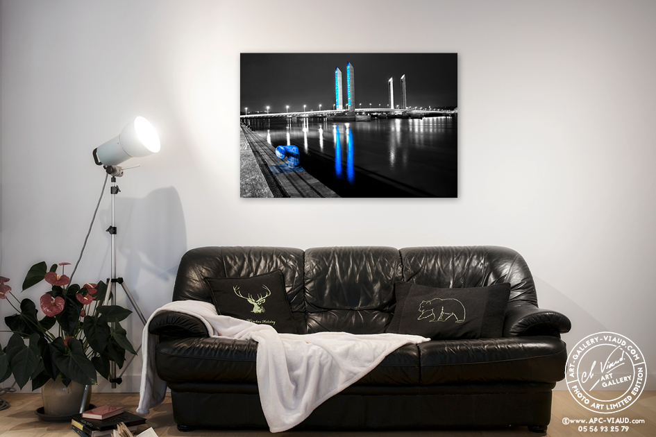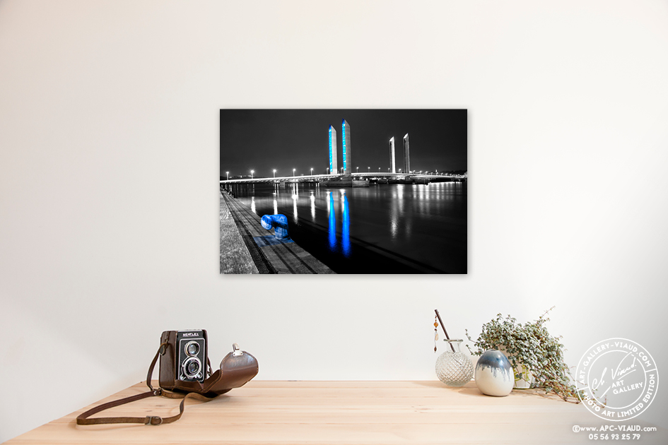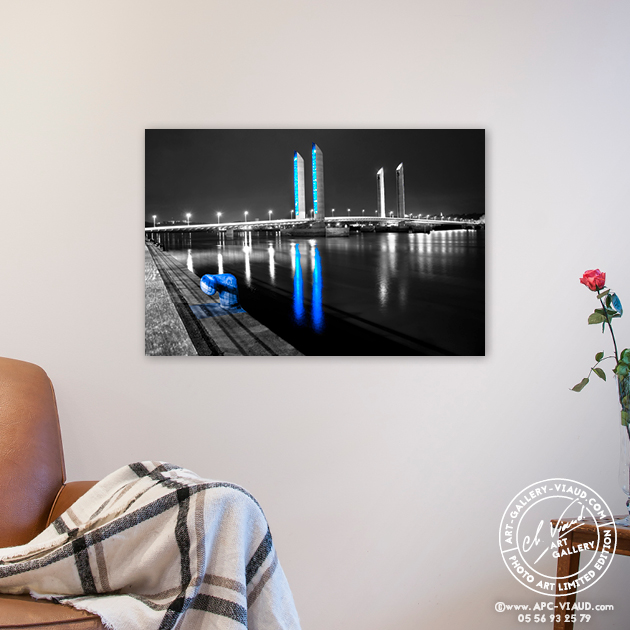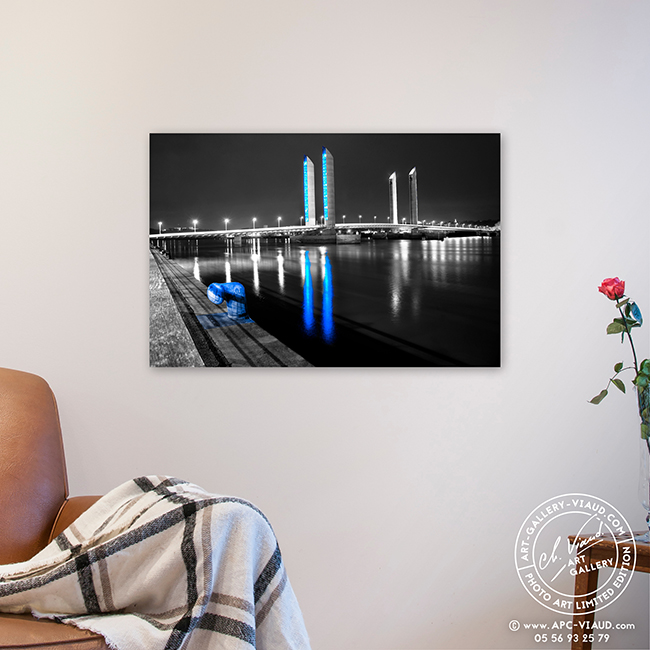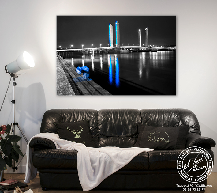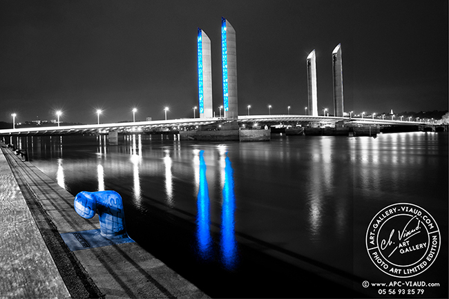 Les lumières du pont Jacques Chaban Delmas ne sont pas là pour éclairer mais pour souligner les lignes de l’ouvrage. Les pylônes, éclairés par des milliers de lampes DEL, changent de couleur en fonction de la marée.